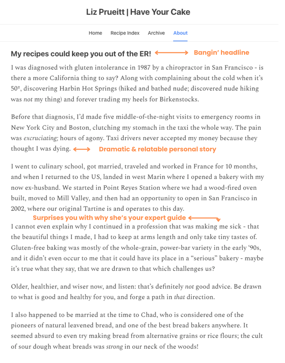 of Have Your Cake uses what’s most important in her backstory to establish herself as a relatable and trustworthy guide about gluten-free baking.